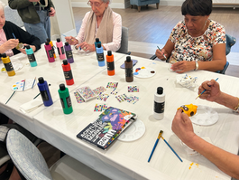 Kangana led a spring-themed painting session with the seniors at Providence Living, creating an uplifting atmosphere for the patients to enjoy this calming activity.